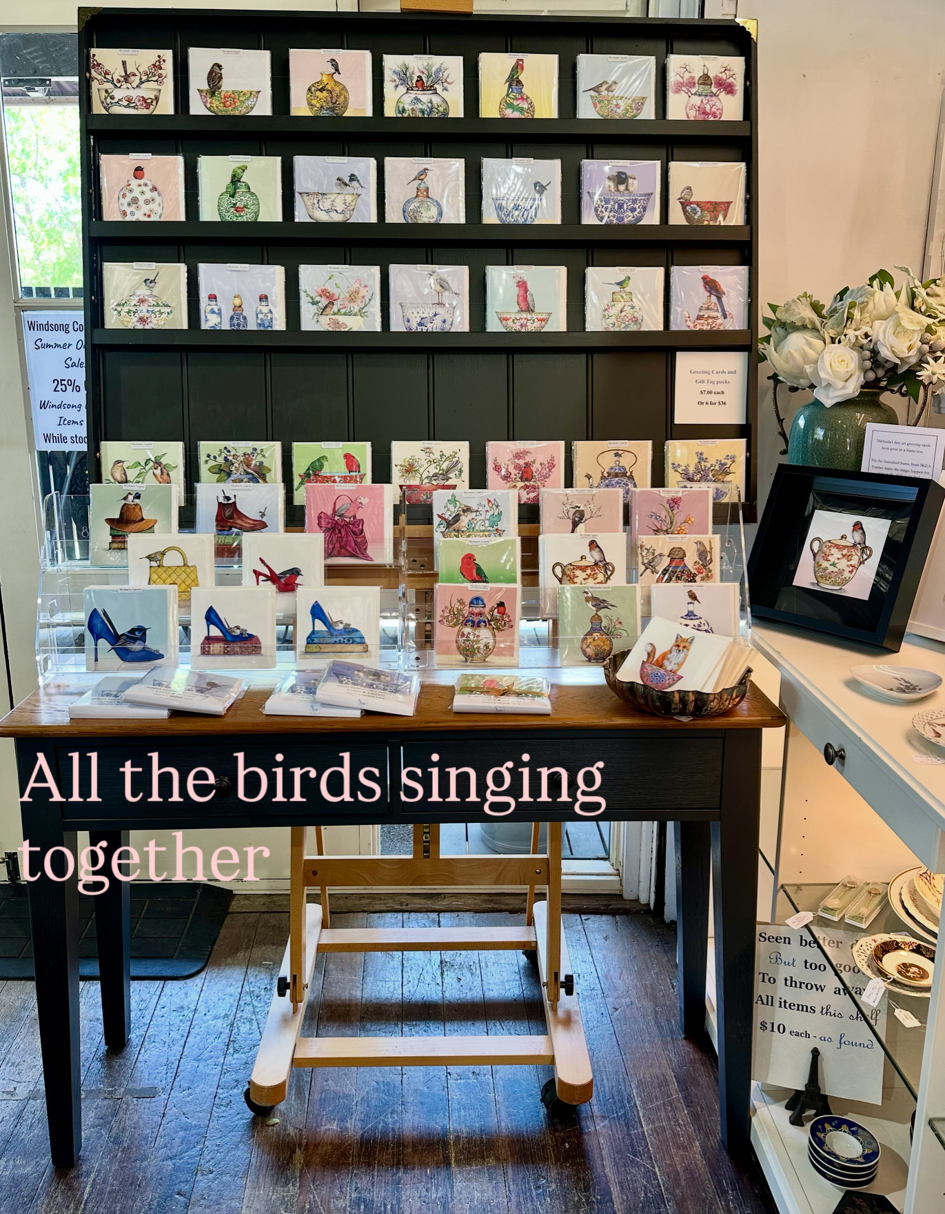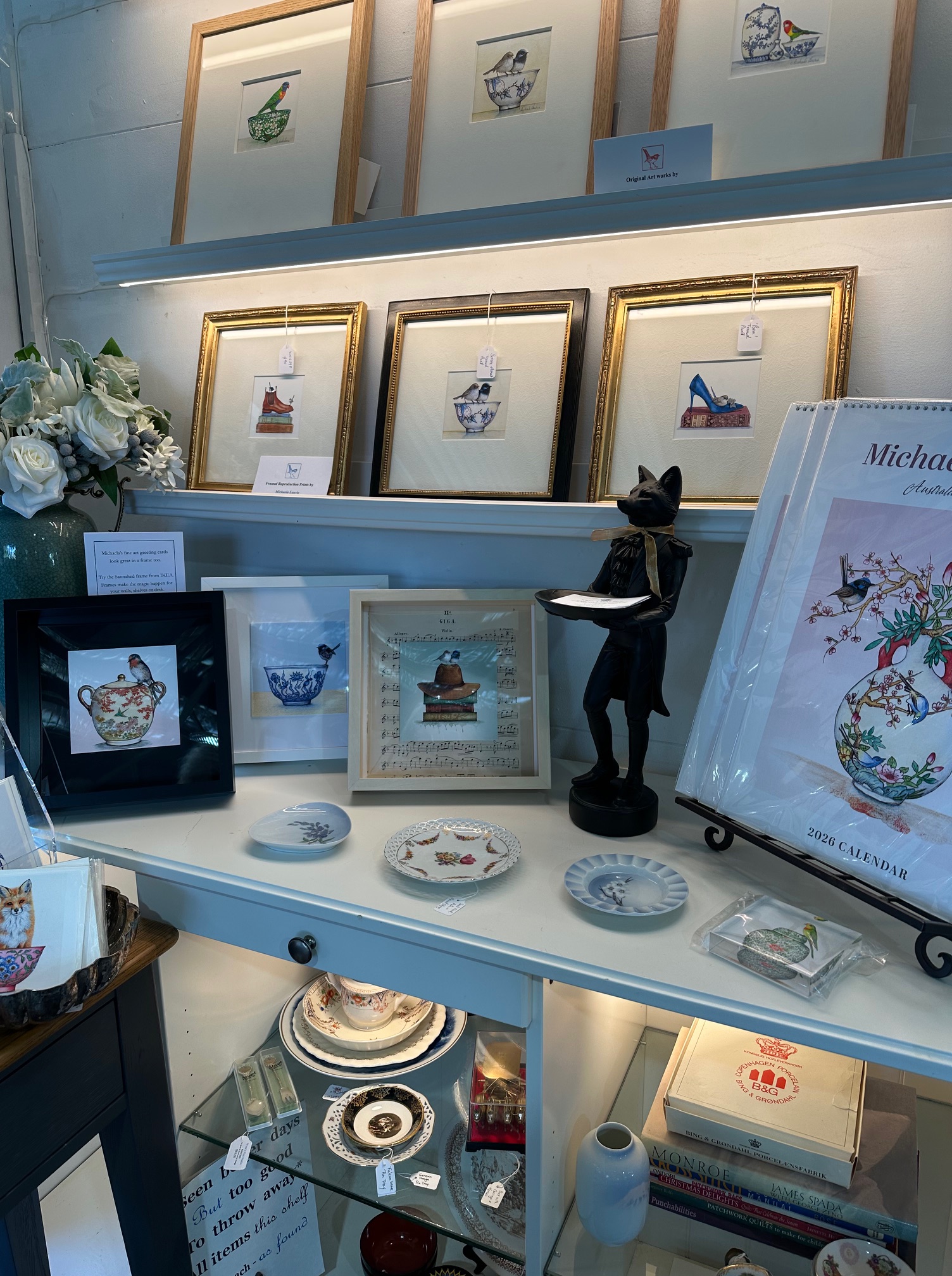 At my store I display my original art in the Gallery of Miniatures, full range of my art greeting cards, greeting card packs, gift tags, reproduction prints and acrylic desk blocks.