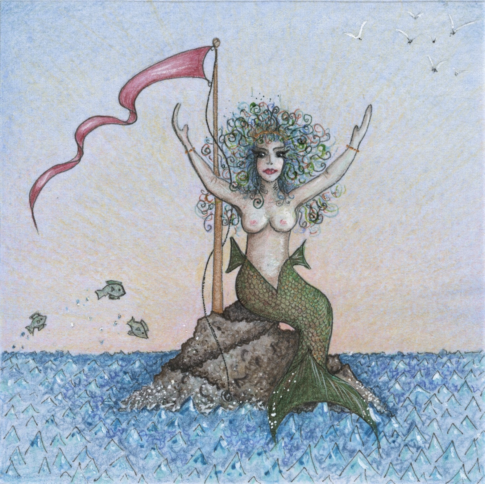 “Water Sprite, Morning Light”10cm square unframed, 30 cm square framed. $350.00